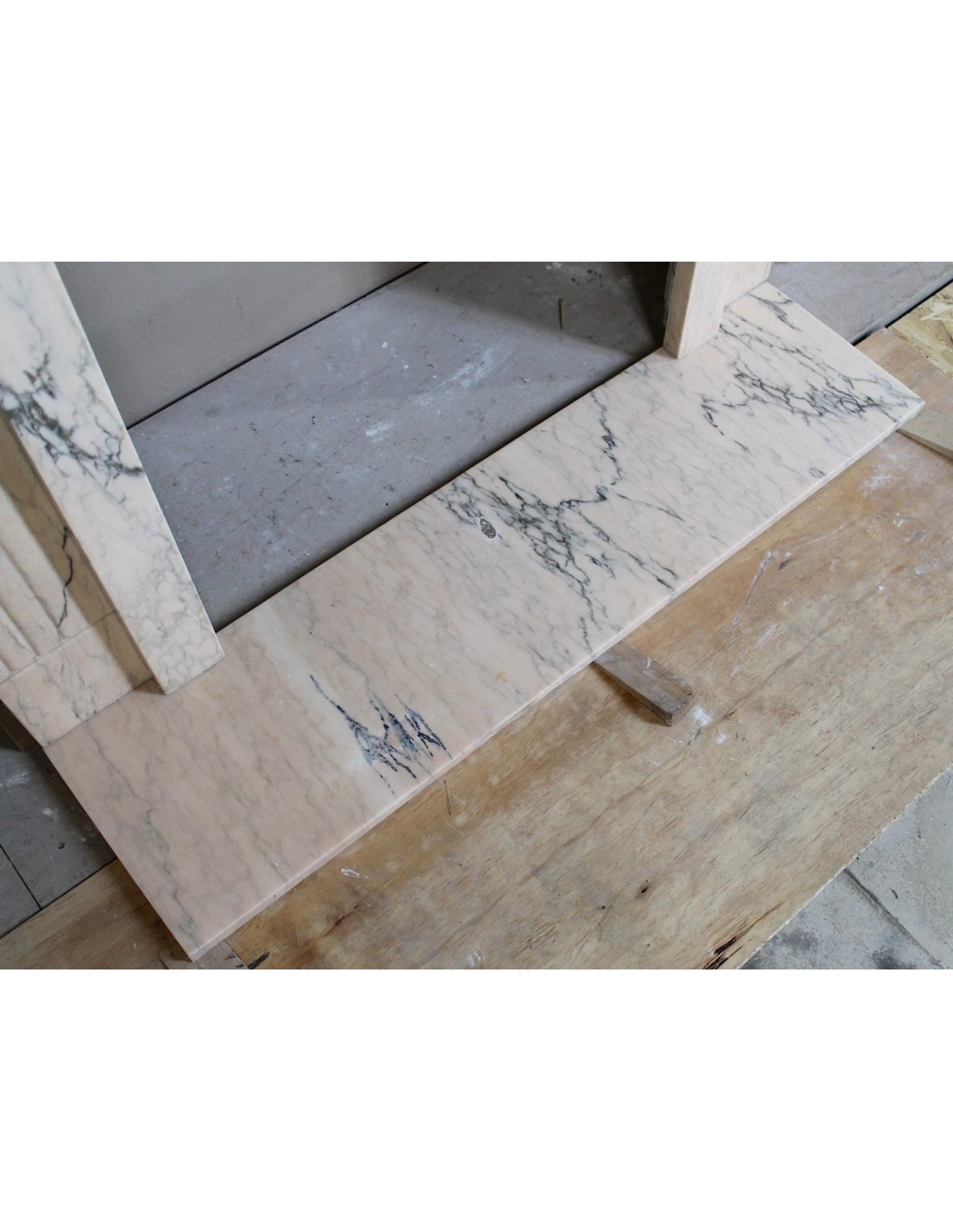 - Il marmo del caminetto qui presentato é stato cavato alle cave di Estremoz, una città del Portogallo distante poco più di 150 km da Lisbona. E' il tipico "marmo "Rosa Portogallo", costituito prevalentemente da calcite e dolomite. Il colore rosato dipende dalla particolare concentrazione di titanio, manganese e ferro con sporadiche venature grigio scuro. In età romana venne largamente impiegato, soprattutto in località vicine alle cave, come nel Tempio augusteo di Évora. In epoca post antica lo stesso materiale è stato impiegato per la costruzione e la decorazione di castelli e chiese.