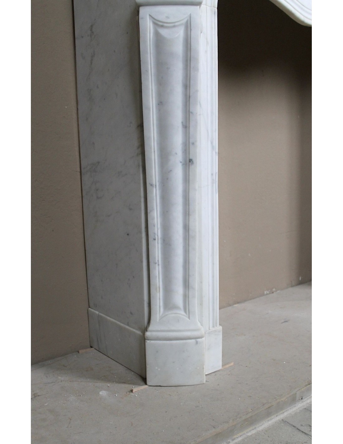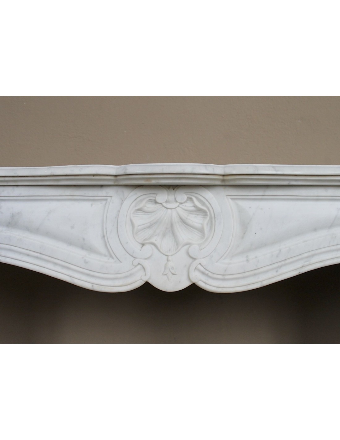 CAMINETTO LUIGI XV “TROIS COQUILLES” IN MARMO BIANCO CARRARA QUALITA' "P" (la lettera P sta per "puro")leggermente venato. QUALCHE ADDETTO AI LAVORI CHIAMA QUESTO STESSO MARMO COL GENTILE NOMIGNOLO DI "Venatino Carrara".