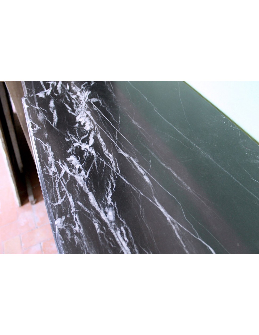 Non é facile trovare una "Parigina" in marmo Nero Marquinia, il cui colore è oggi tra i più amati dalle moderne clienti, ma nell'antichità veniva snobbato a gran vantaggio del Bianco Carrara, col risultato che gli esemplari in questo nero colore son decisamente pochissimi.
