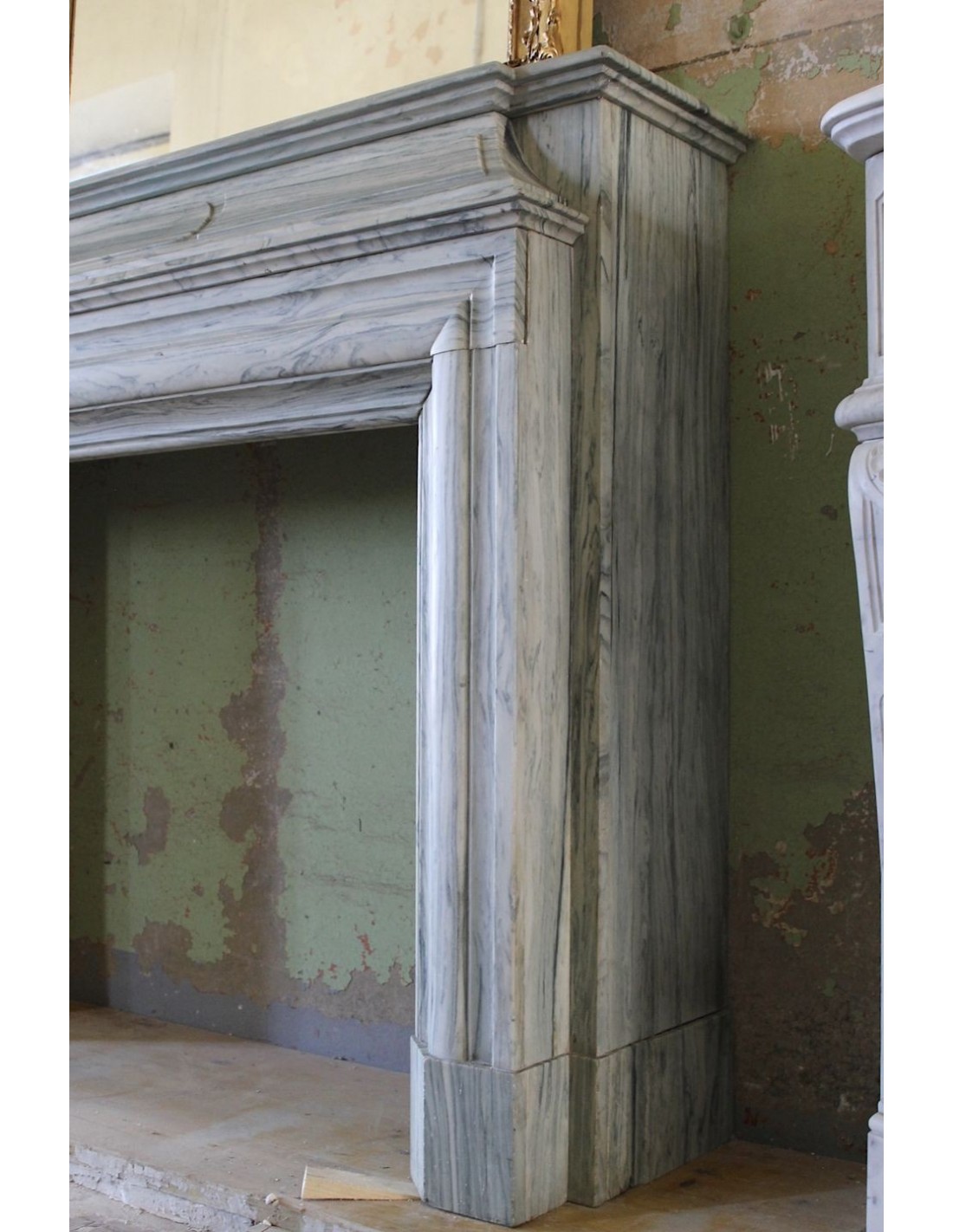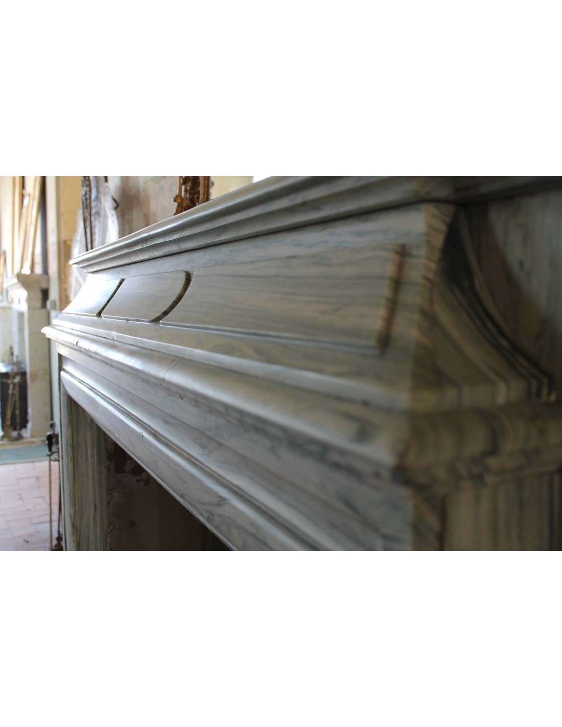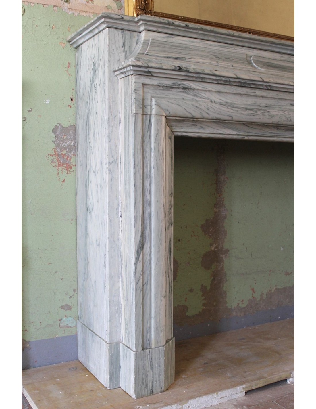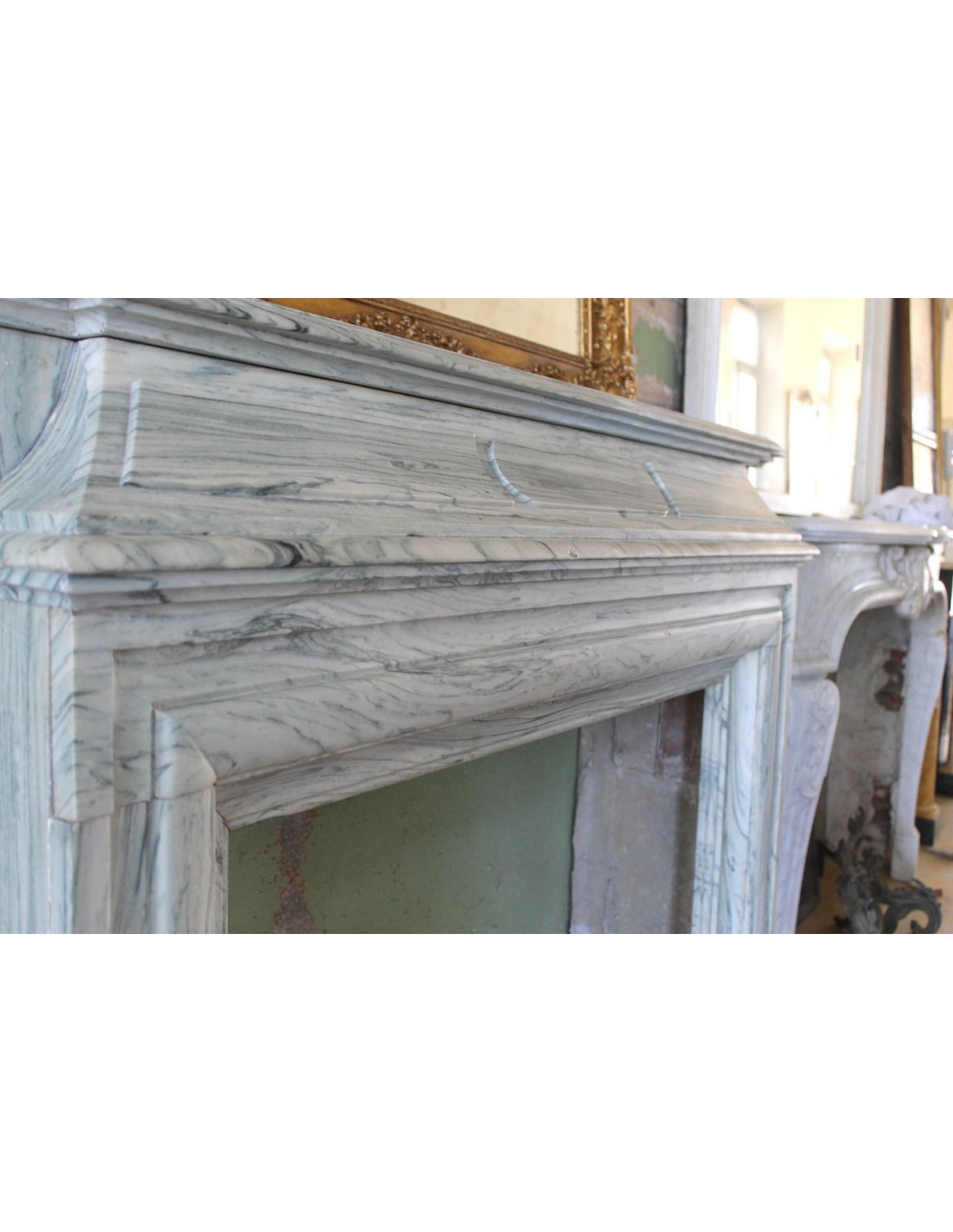 CAMINETTO BOUDIN CON PRECAPPA IN MARMO "ACQUAMARINA" (TENICAMENTE CIPOLLINO MARINO APUANO), SCULTURA DI META' OTTOCENTO (1840-60), OTTIMA CONSERVAZIONE GENERALE, PROVENIENZA COSTA AZZURRA.