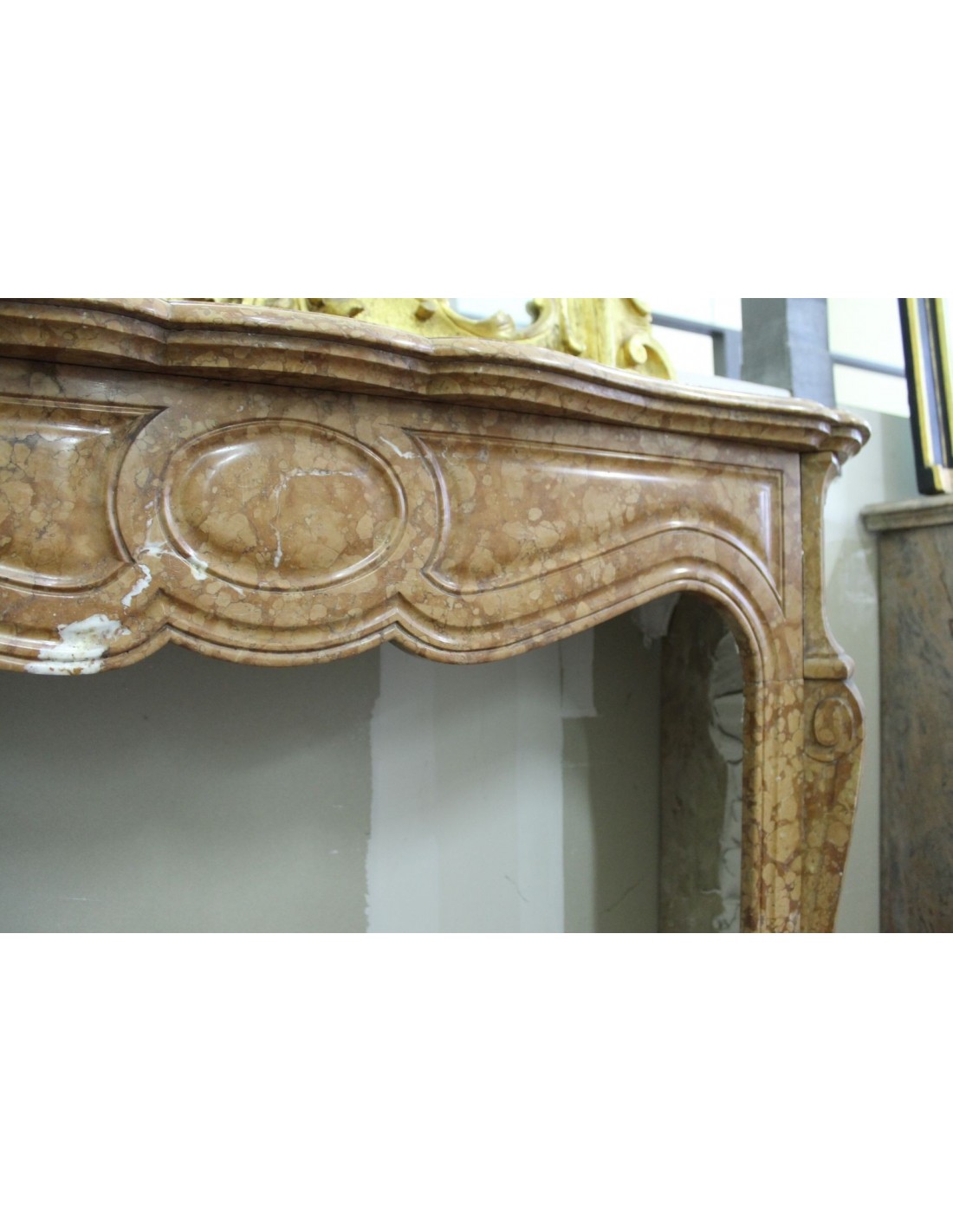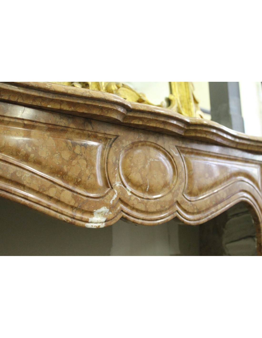 Rarissimo e perfettissimo caminetto Luigi XV "Pieds Galbés". Perchè, mi chiedete, è rarissimo, se è scritto dappertutto in questo sito che di caminetti così in Bianco Carrara ne hai una trentina a magazzeno? Ma perchè, se è vero come è vero che qualunque commerciante di antichi caminetti ha un Pied Galbé in mostra (bianco...), è anche vero che trovarne in bei colori è molto, molto difficile.. Trovarne poi uno in un Rosso Asiago con toni vicini all'aragosta come questo è quasi impossibile. Non mi credete, provare per credere, con qualche telefonata ai vari rivenditori italiani di antichi caminetti vi renderete conto che non son fole, le mie.. Il fatto è che nell'ottocento, mica sapevano che voi, uomini e donne del tremila, vi sareste sciolti davanti a questo suo colore, gli scalpellini dell'epoca continuavano a far camini in Bianco Carrara perché la richiesta del tempo era soprattutto quella, tutto lì, l'arcano!
