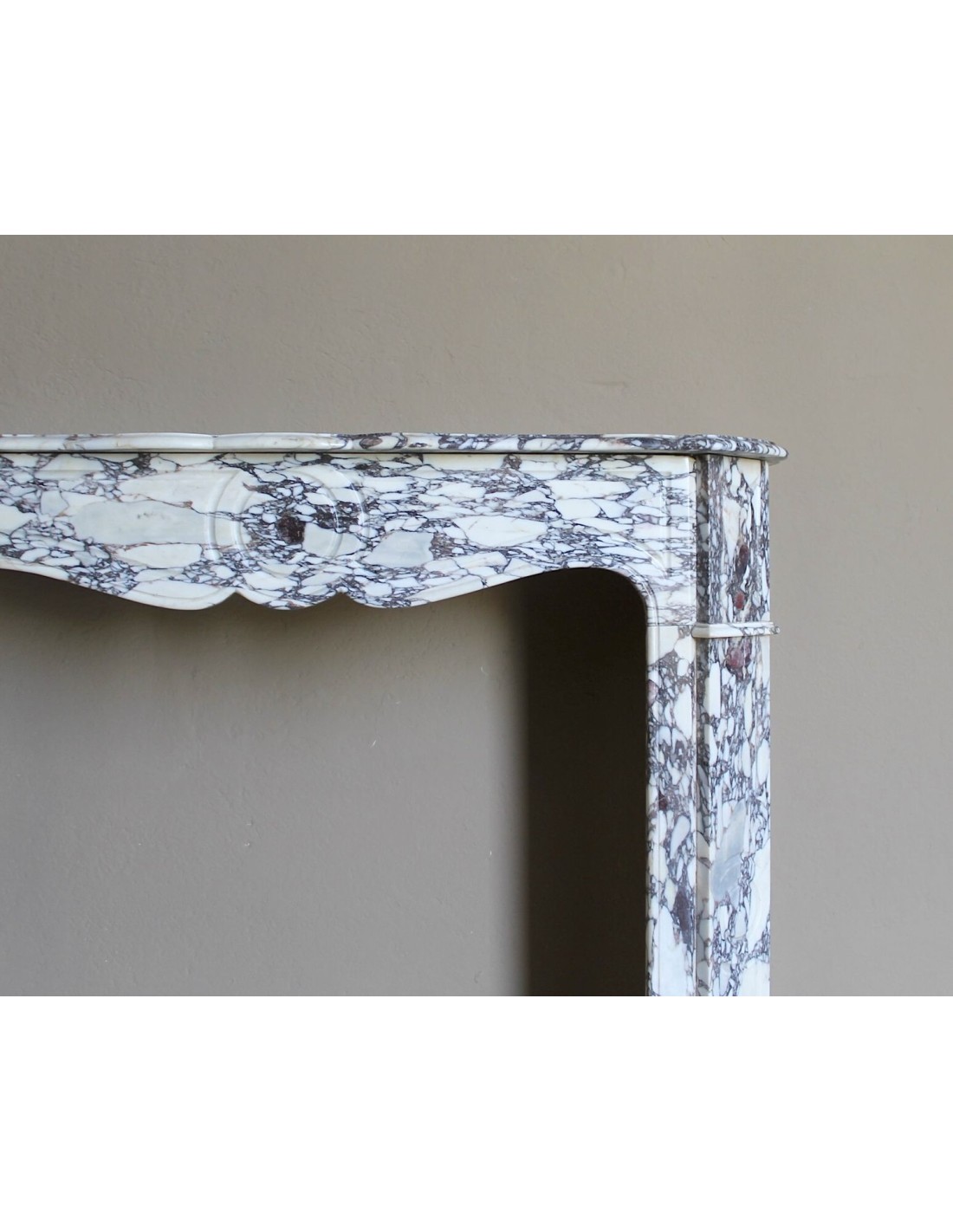 053 CAMINETTO LUIGI XV "POMPADOUR PLAT" SCOLPITO IN RARISSIMO MARMO BRECHE VIOLETTE