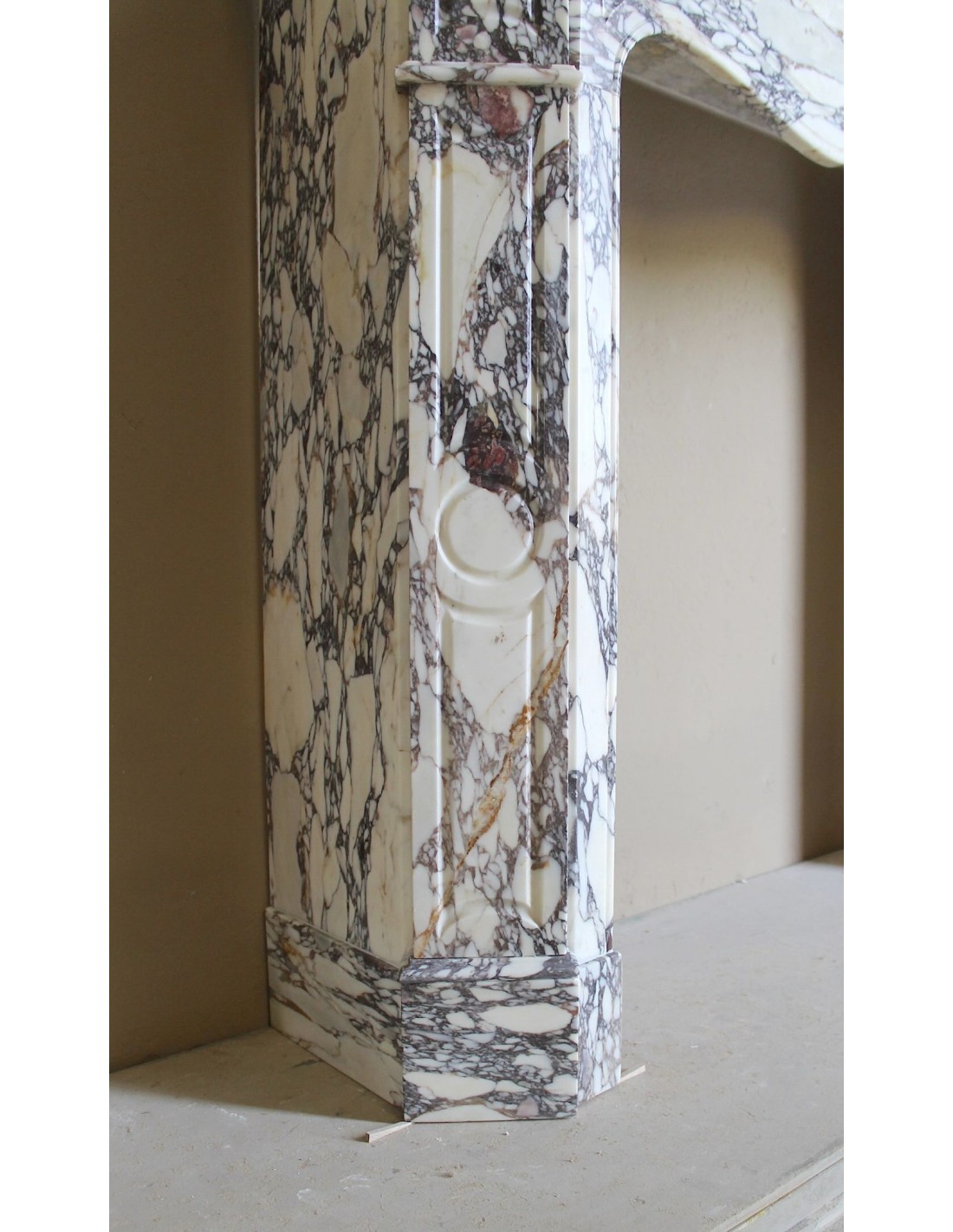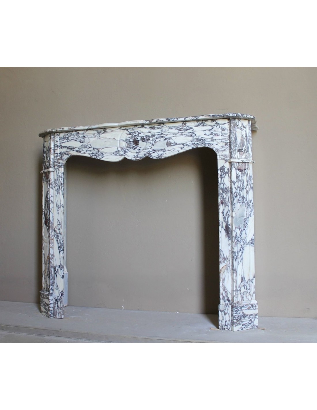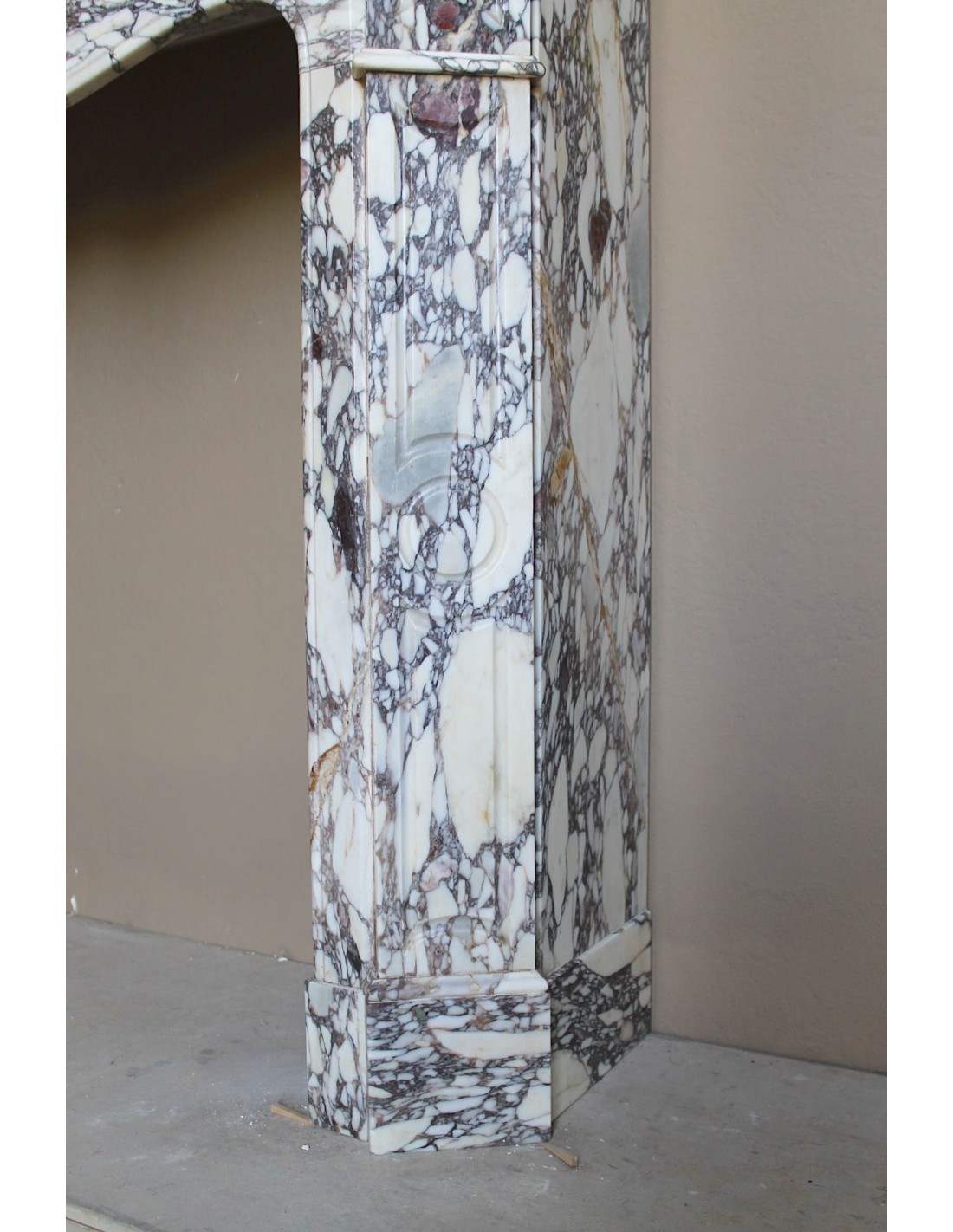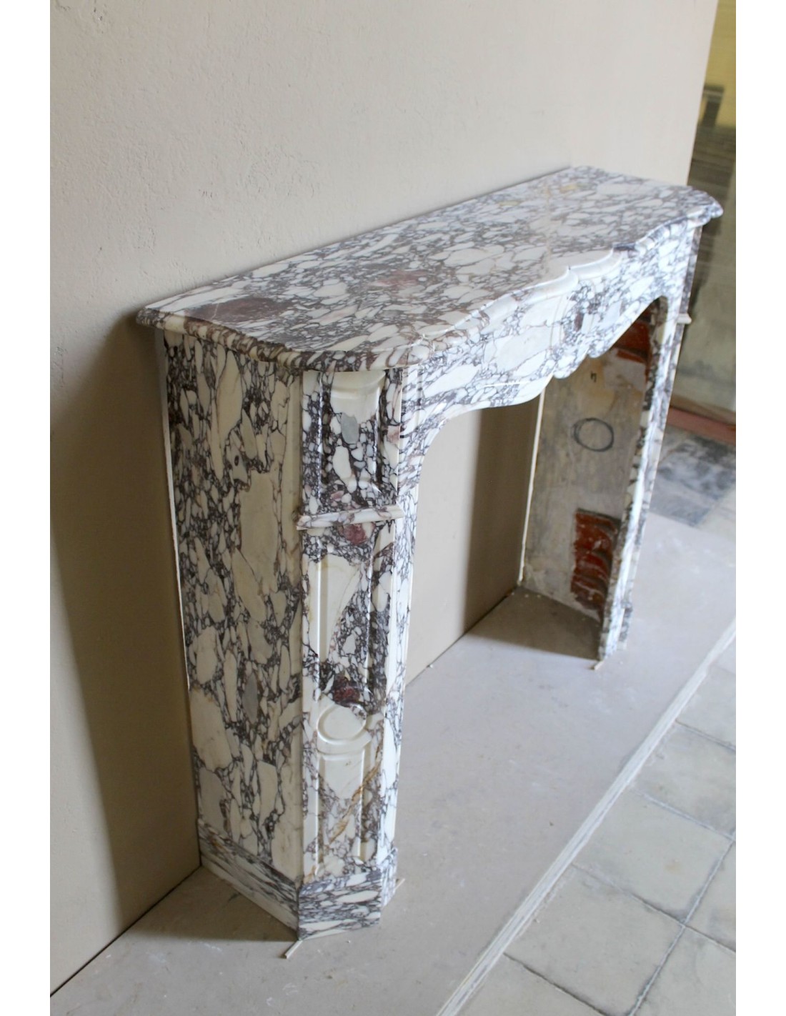 OTTOCENTESCO CAMINETTO LUIGI XV "PIED GALBE' " IN MARMO BRECHE VIOLETTE, PROVENIENZA PARIGINA..