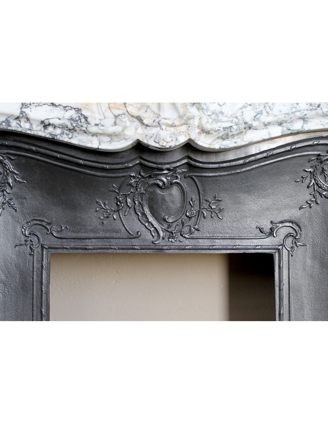 Molto interessante é anche il suo controcuore in ghisa d'arte, il quale ha due decori che val la pena rilevare: