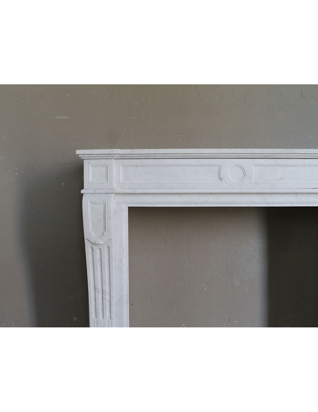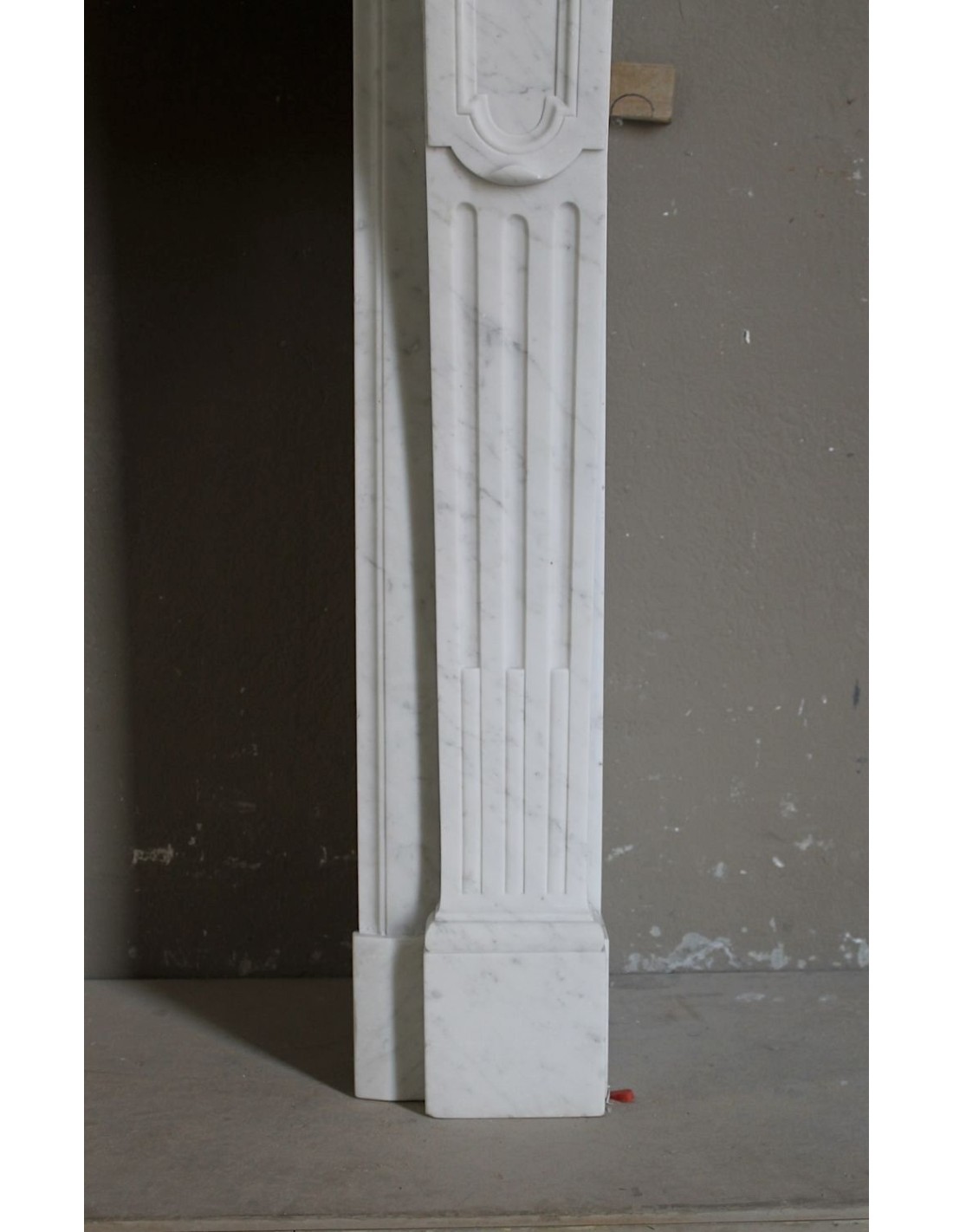 CAMINETTO "LANGUETTE" IN MARMO "BIANCO P" (NELL' ITALICO IDIOMA DEGLI ADDETTI AI LAVORI ... "STATUARIETTO", CIOE' UN BIANCO LATTEO E CALDO, CON QUALCHE INCLUSIONE GRIGIA O NERA... IL MICHELANGIOLO BUONARROTI NON L'AVREBBE SCELTO PER LA SUA PIETA', MA RIMANE UNO DEI PIU' IMPORTANTI E RAFFINATI MARMI CARRARINI).
