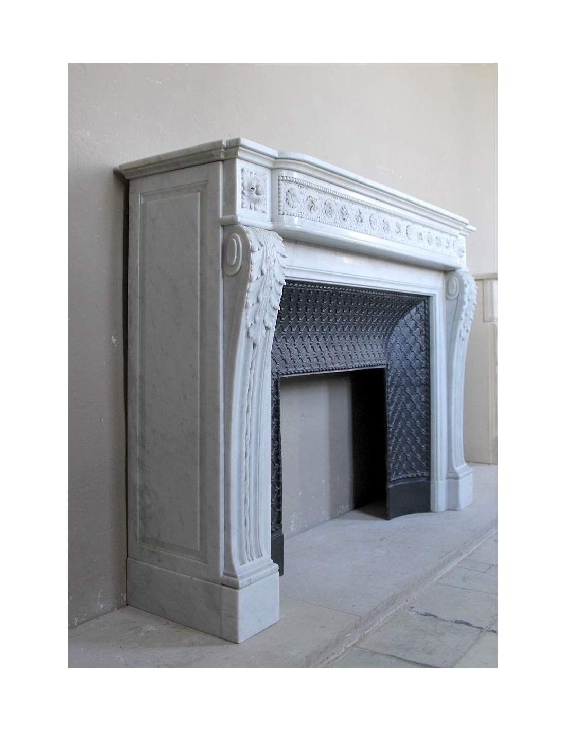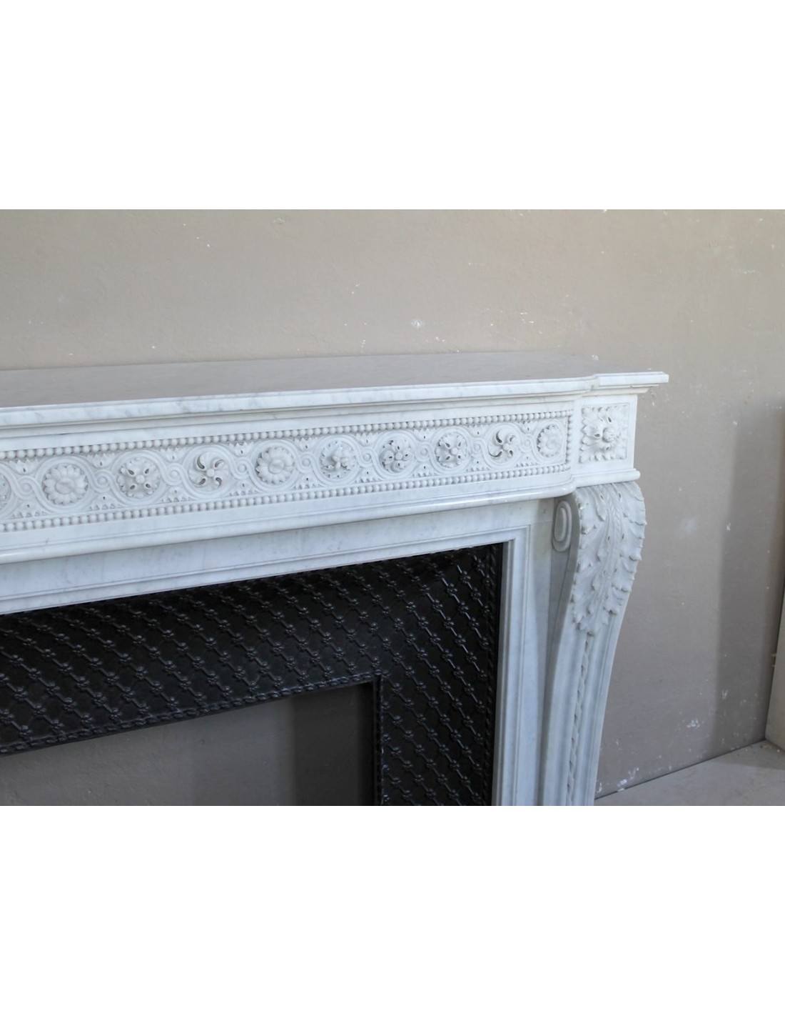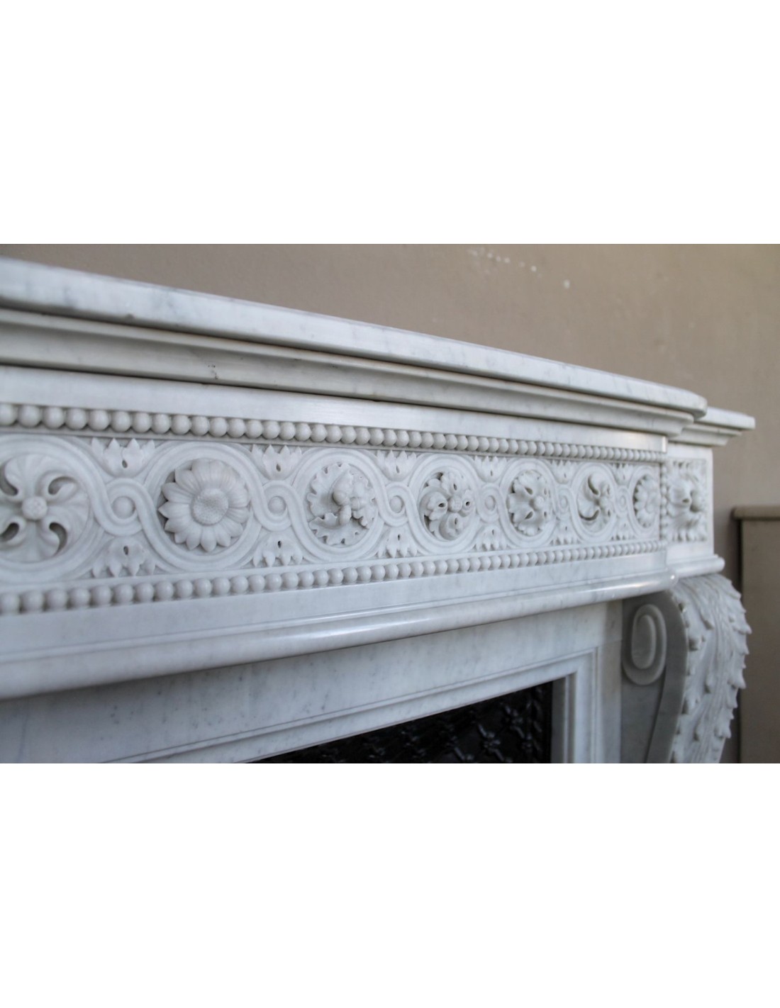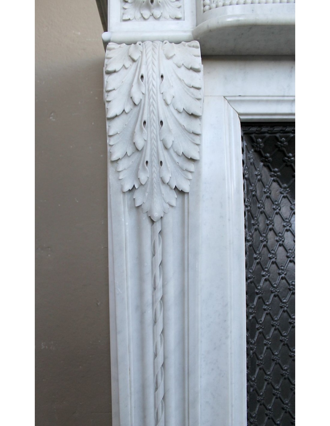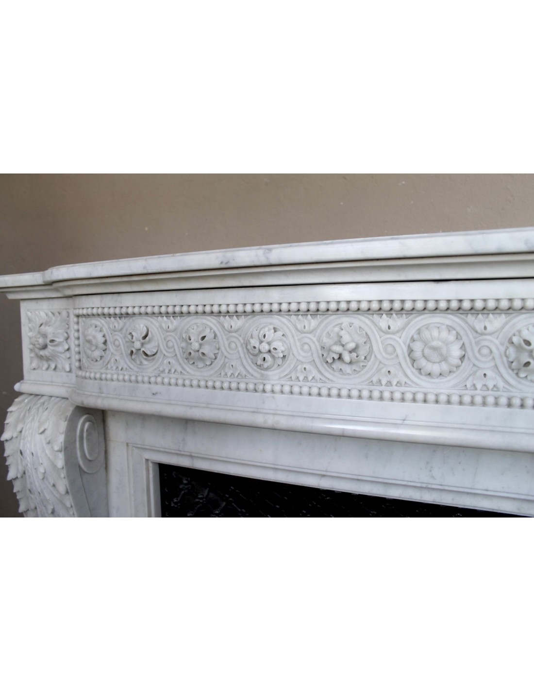 Dove finiscono le foglie d'acanto inizia un nastro che gira su se stesso fino a giungere allo zoccolo del camino, questo elemento scultoreo , nasce nel '700, si chiama "nastro di Möbius" ed è la rappresentazione "geometrica" dell'infinito, la quale ha ispirato molti artisti. Evidentemente ha ispirato anche l'architetto parigino che ha disegnato questo impareggiabile camino.
