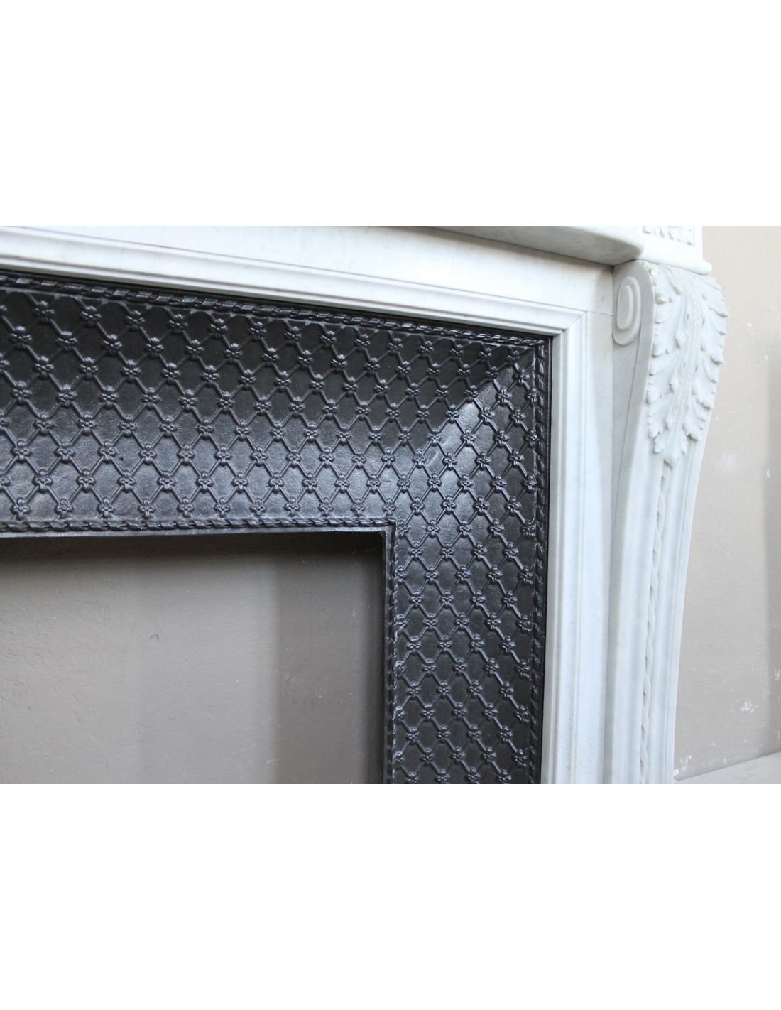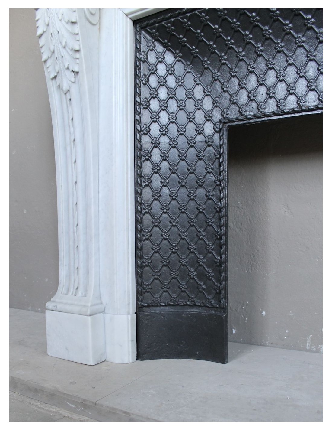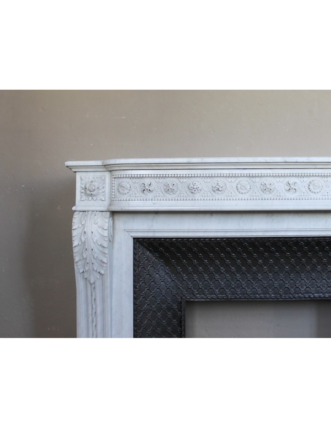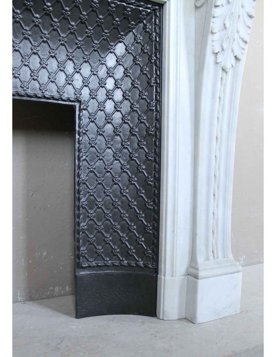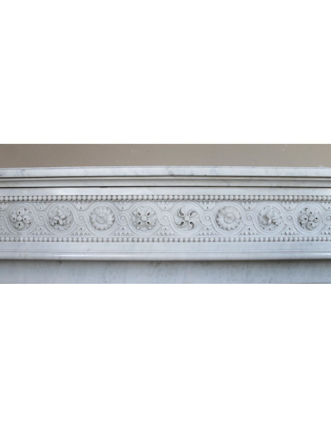 Dove finiscono le foglie d'acanto inizia un nastro che gira su se stesso fino a giungere allo zoccolo del camino, questo elemento scultoreo , nasce nel '700, si chiama "nastro di Möbius" ed è la rappresentazione "geometrica" dell'infinito, la quale ha ispirato molti artisti. Evidentemente ha ispirato anche l'architetto parigino che ha disegnato questo impareggiabile camino.