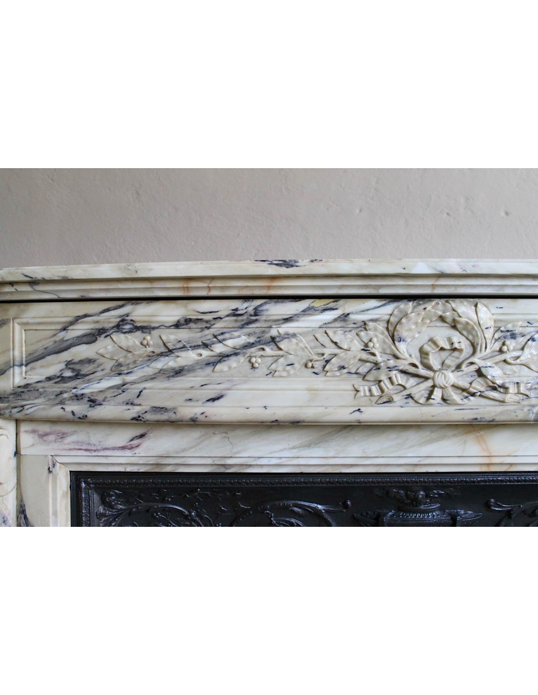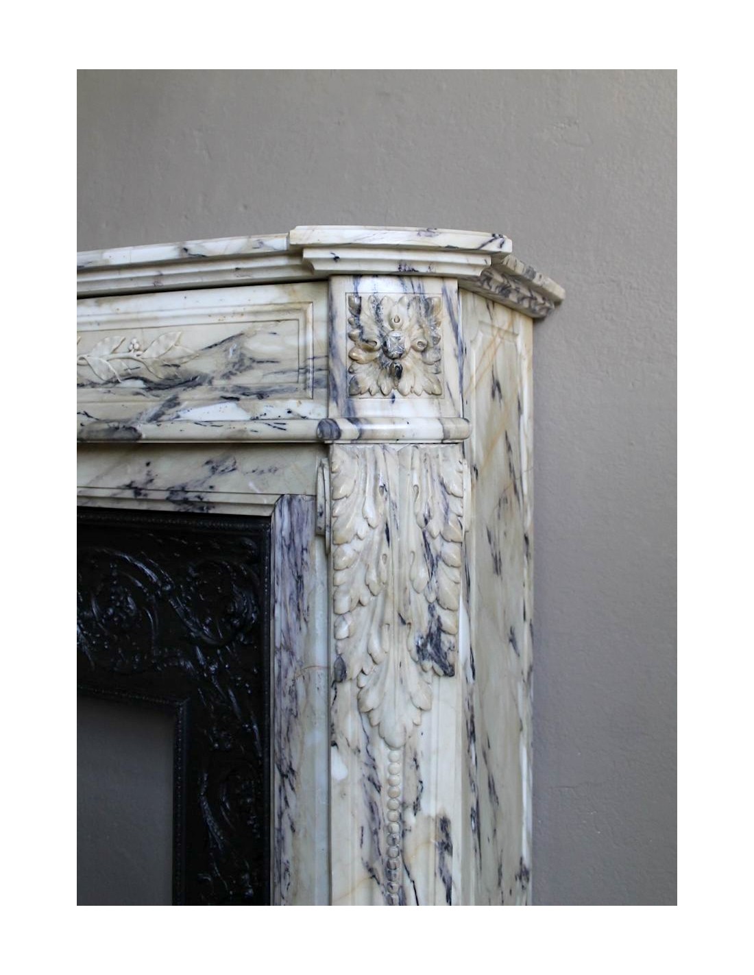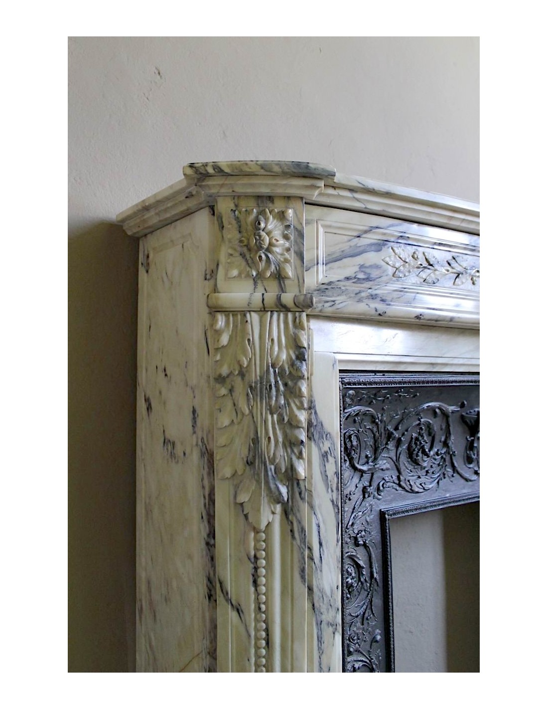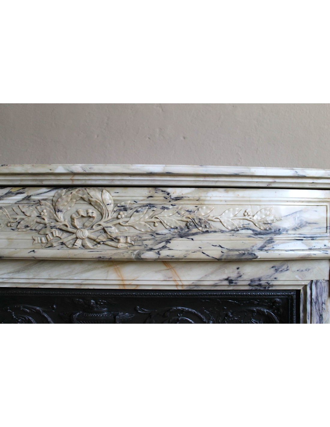 Questo camino fa parte della grande famiglia degli stili neoclassici, sostanzialmente la più importante nel periodo Napoleone III (1850-80) ed in particolare questo esemplare, pur con tutti gli adeguamenti di quel periodo, fa indubitabilmente, riferimento allo stile Luigi XVI (ultimo quarto del ‘700). E sino lì, tutto va bene.. Però (e qui casca l’asino) il suo frontale, la cui superficie ospita la scultura più importante di tutto il camino, non è lineare, non è squadrato e fermo come un corazziere, bensì (ORRORE!!) è “curvato” (o, se preferite “arcuato”). Non solo, a ben guardare, anche le gambe, per poter accompagnare la curvatura del frontale che stanno sostenendo, non sono in teutonico angolo retto di 90° (DOPPIO ORRORE!!) ma più larghe (con più gradi in larghezza, insomma) perché debbono adattarsi, collimando, alla stondatura del frontale.. Una sorta di “Voglia di Novità” per gli architetti che l’hanno progettata, una Bestemmia per i puristi neoclassici. A questo punto è stato anche necessario cambiare il nome al camino stesso.. Non si poteva chiamarlo “Louis Seize” e basta perché non esiste (non può esistere) un Luigi XVI con un frontale arcuato e così gli fu dato il nome di “Louis Seize Arrondi” (ARRONDI’ è un aggettivo francese che significa “arrotondato”) (che sarebbe come dire.. Sì, è di quella brava e bella famiglia, ma ha qualche problema, mica è normale..).