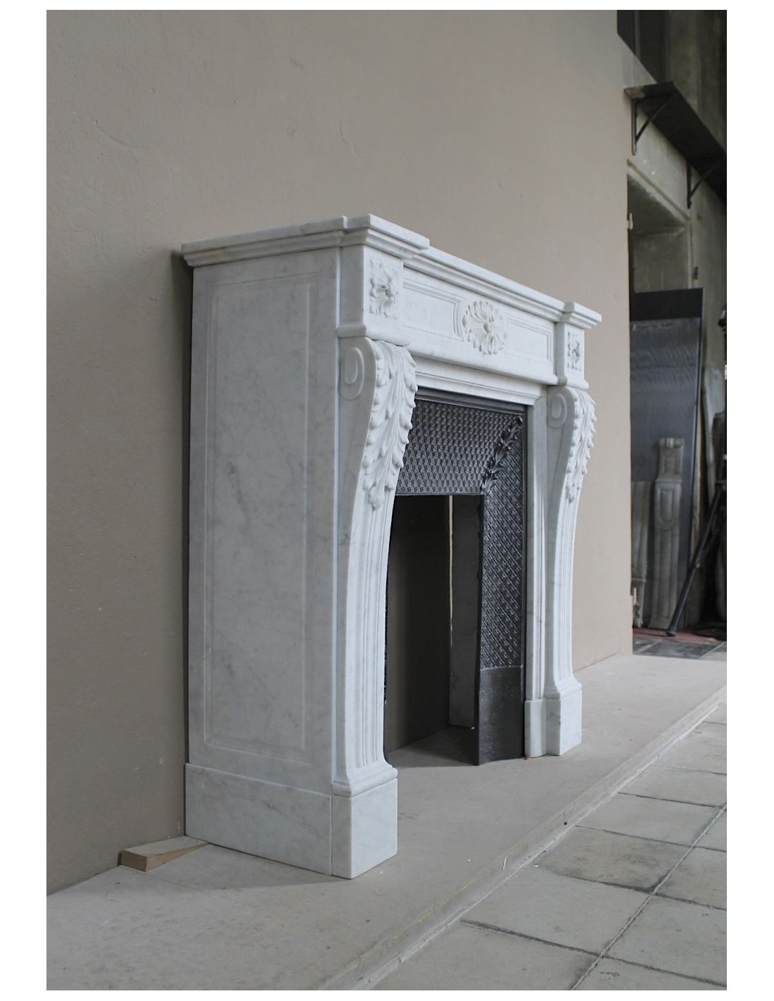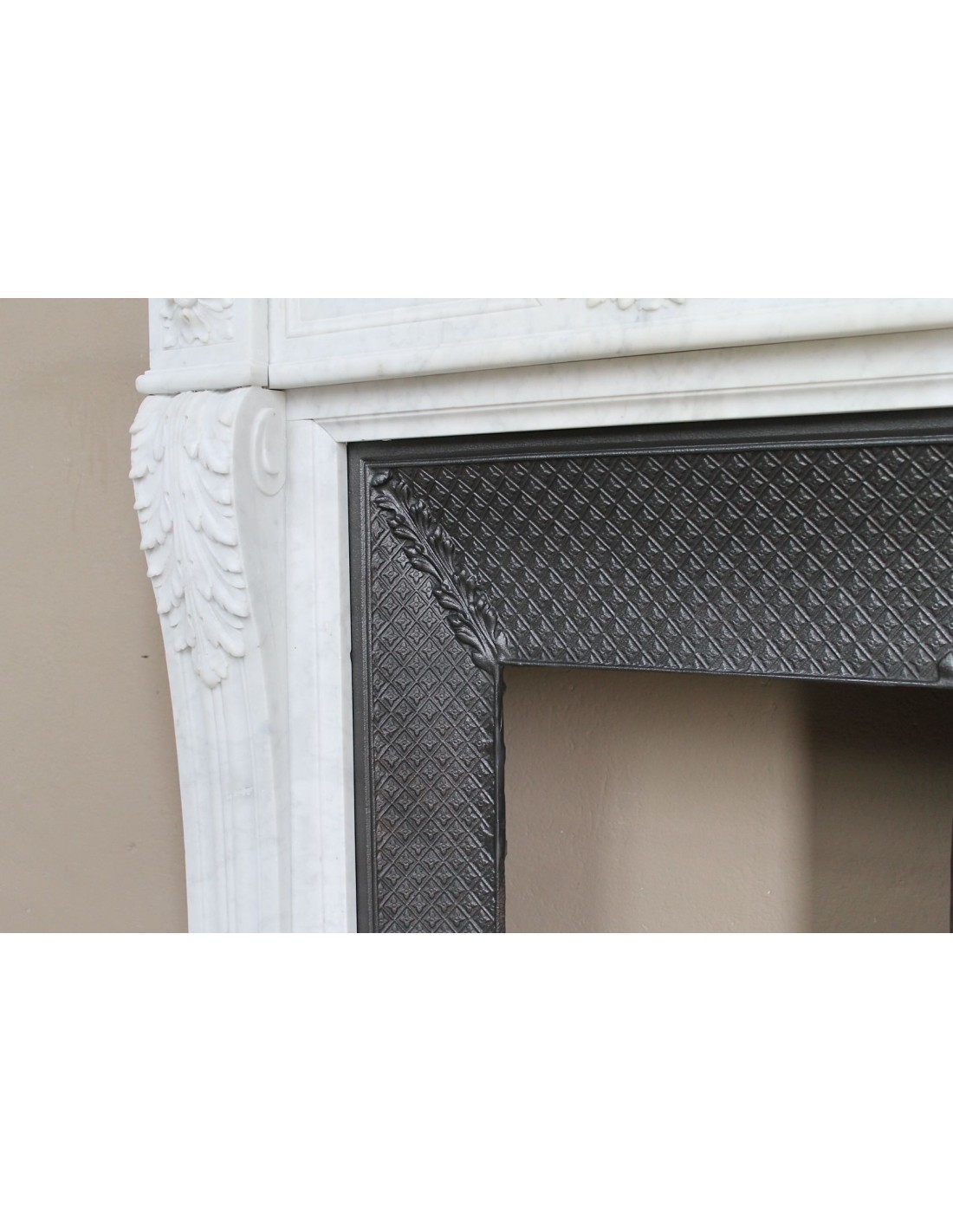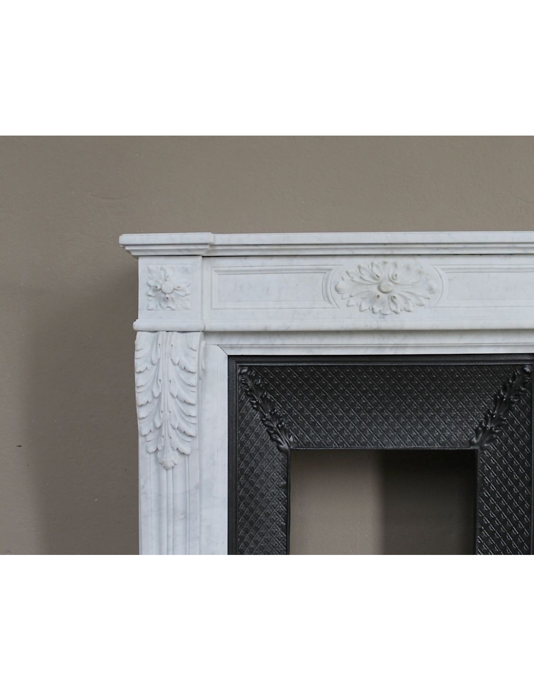 1) la scelta delle lastre di marmo con cui costruirlo é stata davvero ben fatta.. E comunque, "é stata", dovete infatti considerare (ed a chi verrà al mio magazzeno dimostrerò visivamente come questo fatto fosse usuale nei laboratori di scultura ottocenteschi..) dovete infatti, stavo dicendo, considerare che in genere, una volta selezionate le lastre di Carrara con cui scolpire "la facciata" del caminetto, per i fianchi ed il pianale si ricorreva a lastre di minor qualità (e costo..). Qui, invece, abbiamo grande ed efficace omogeneità dei toni del Carrara usato in ogni sua parte.