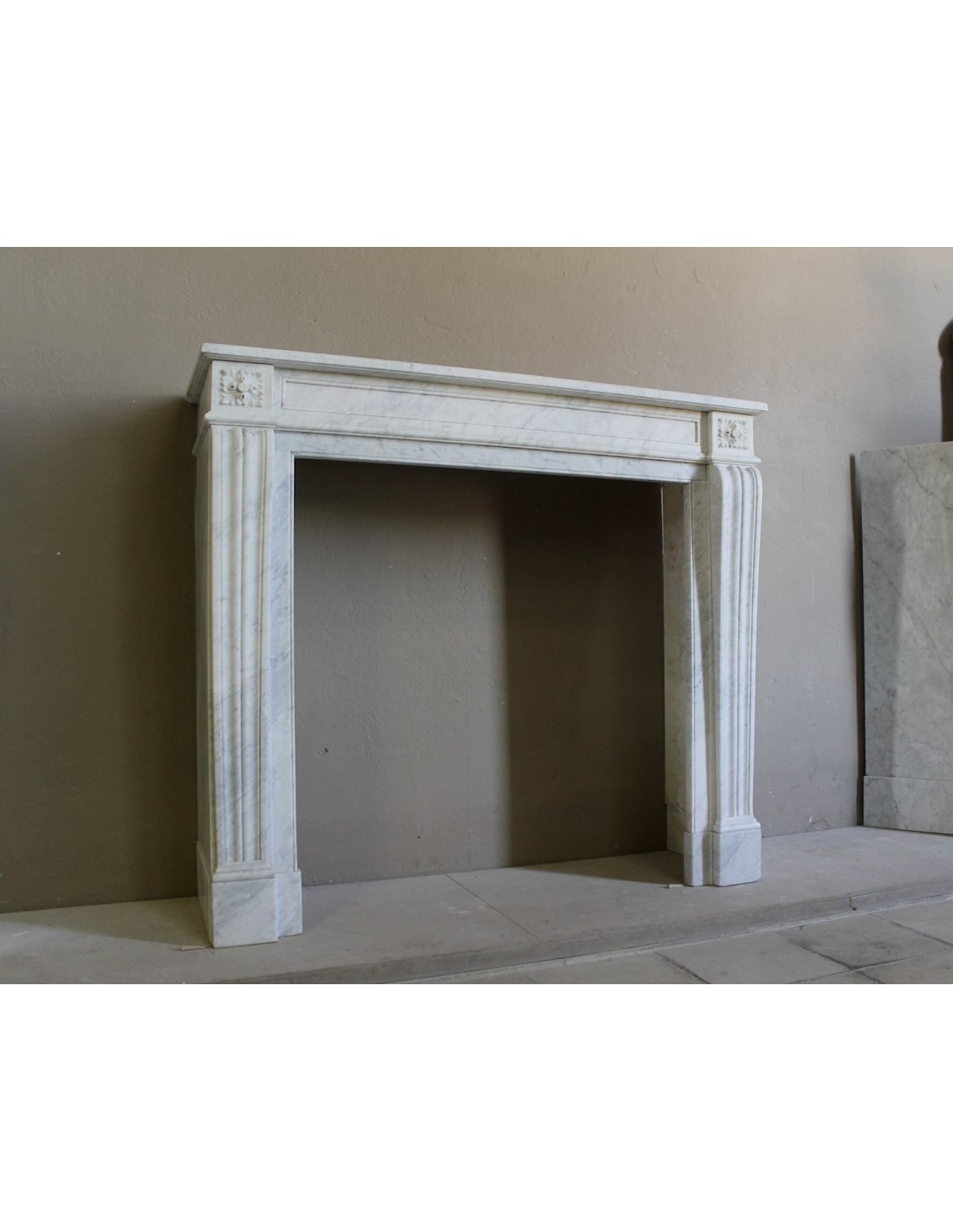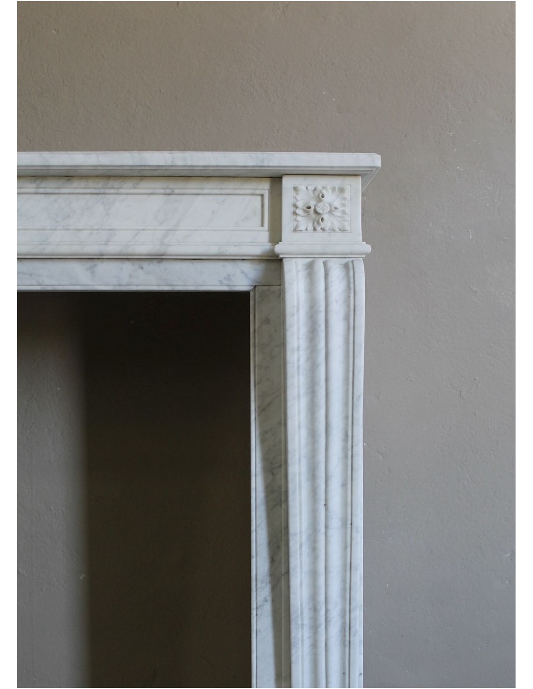 Perché questo splendido Luigi XVI "Deux Roses" é stato scolpito (ribadisco: finissimamente e per nulla "semplicemente") in un marmo Bianco Carrara selezionato con cura, sia per la omogeneità delle sue varie lastre, sia per la loro purezza da inclusioni o frezzature troppo nere o troppo grigie.