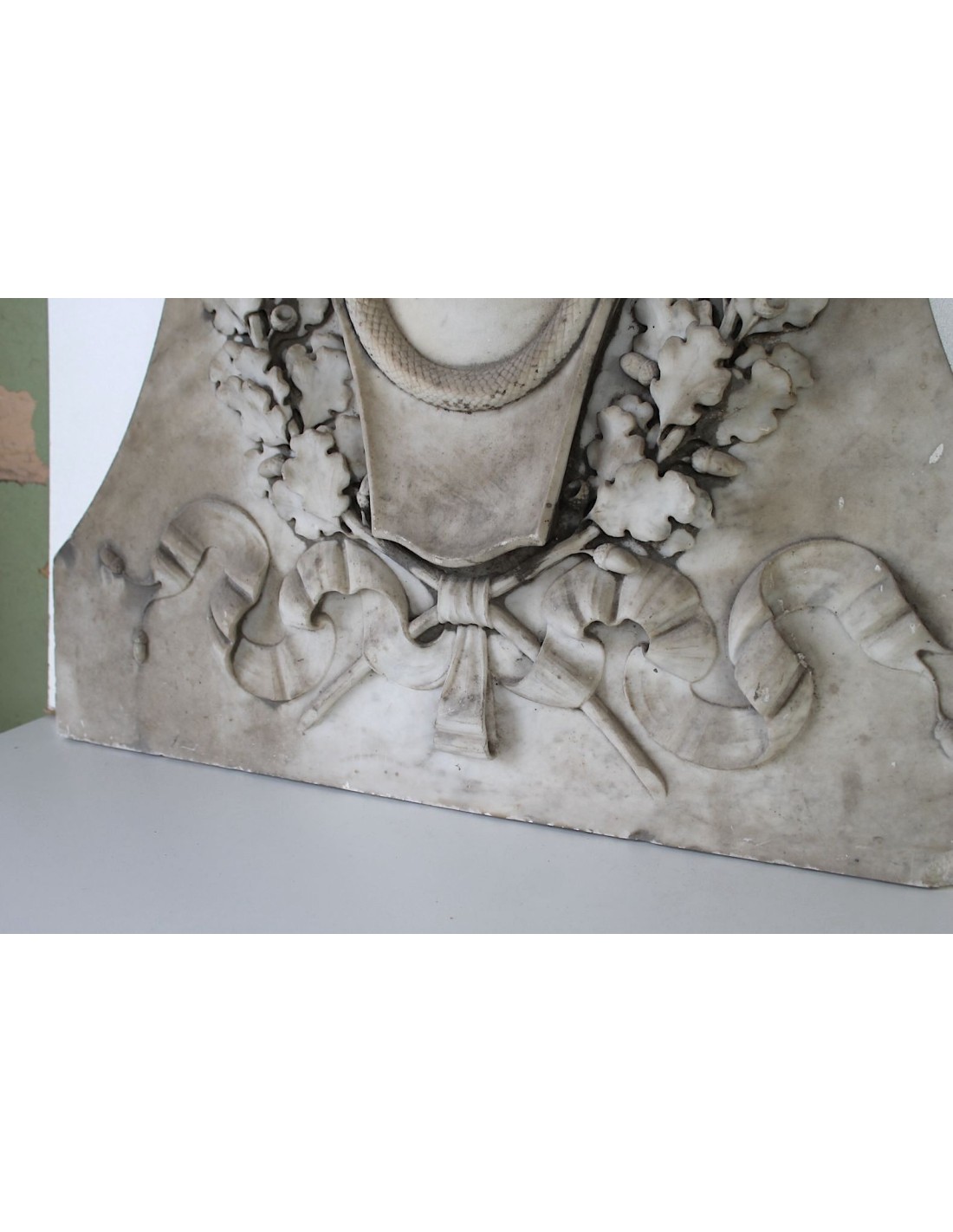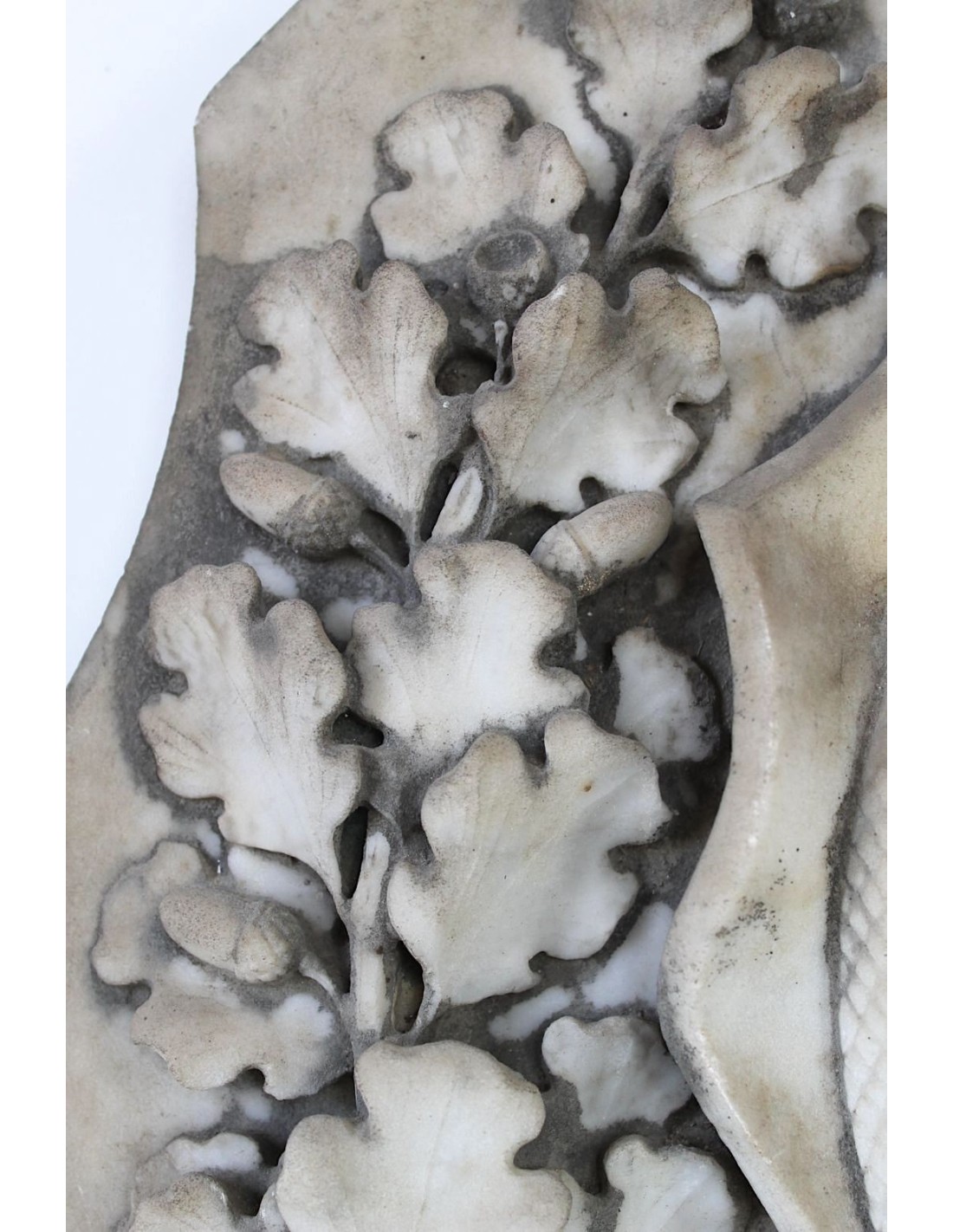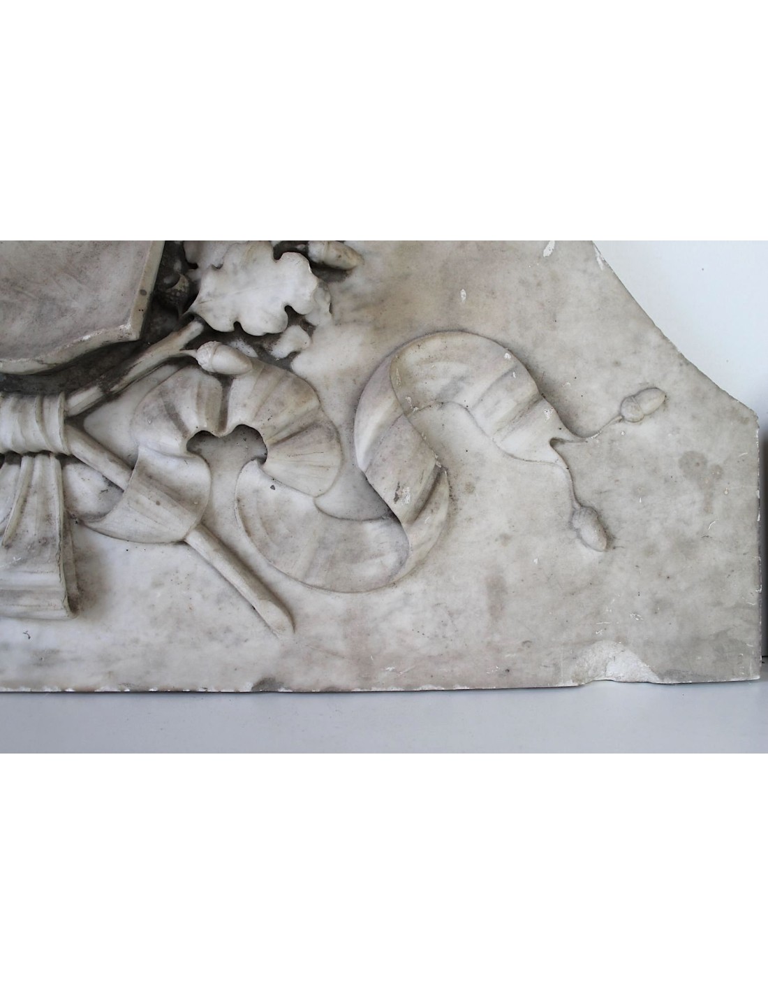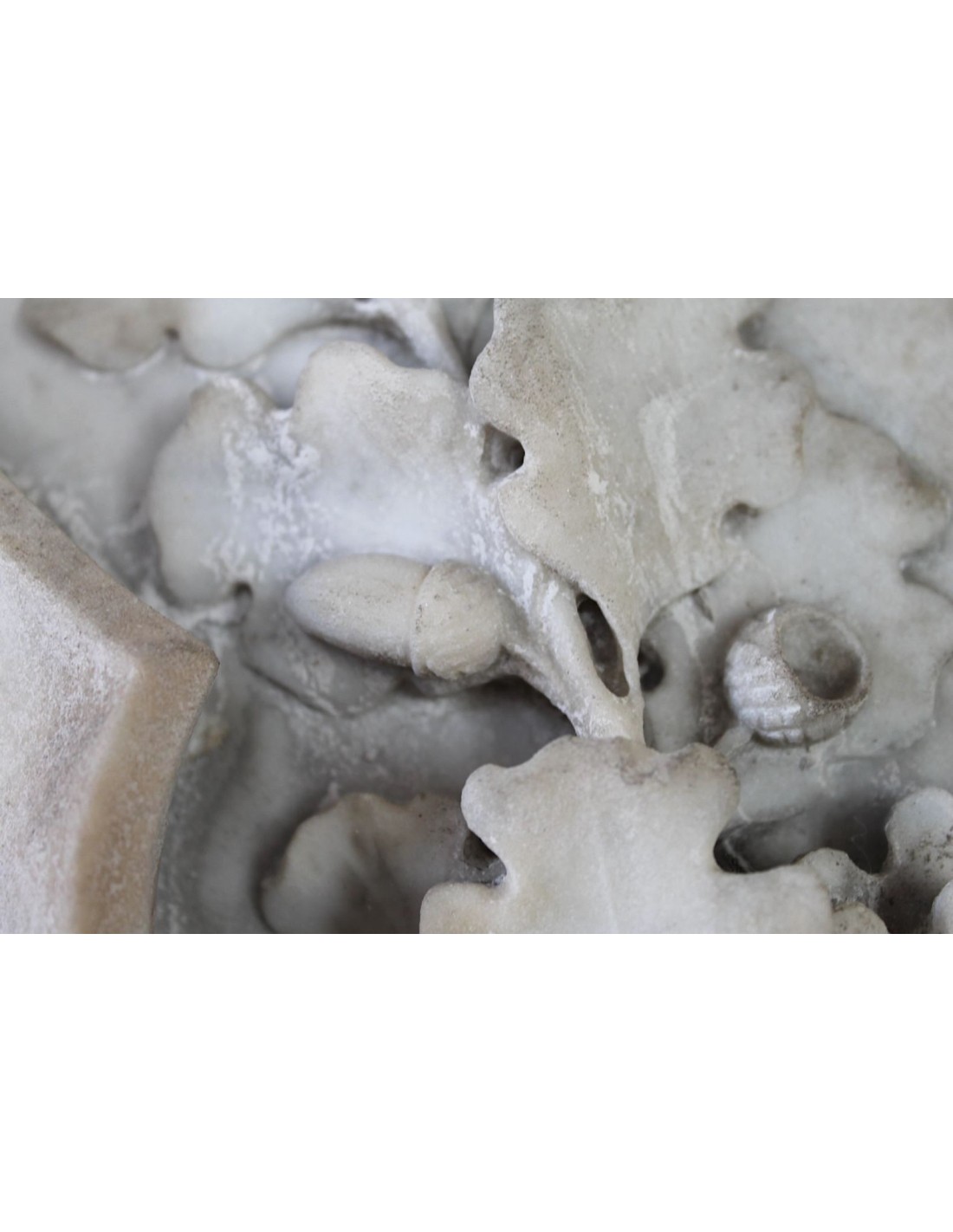 Lo stemma presenta, oltre ai florilegi ed ai nastri di contorno, una, finissima di fattura, vipera che si morde la coda, scuramente l'emblema di una nobile famiglia lucchese (se c'è qualcuno di Lucca che sa, parli, ne sarò felice..). Dimenticavo, la conservazione di queste sculture è PERFETTA.