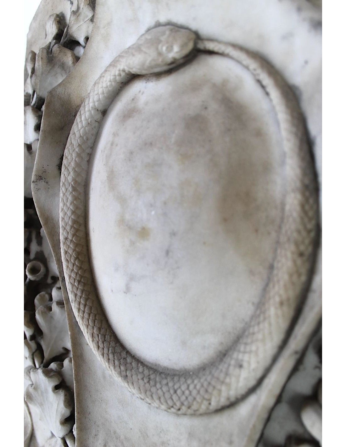 LA LORO EPOCA NON E' ANTICHISSIMA, IL MARMO BIANCO DI CARRARA E' SINCERO E VIRILMENTE NON NASCONDE LA SUA ETA'. UN ESPERTO DEL SETTORE VI CONFERMERA' CHE IL MOMENTO DI NASCITA DI QUESTA SCULTURA E' DATABILE ALLA SECONDA META' DELL'OTTOCENTO.